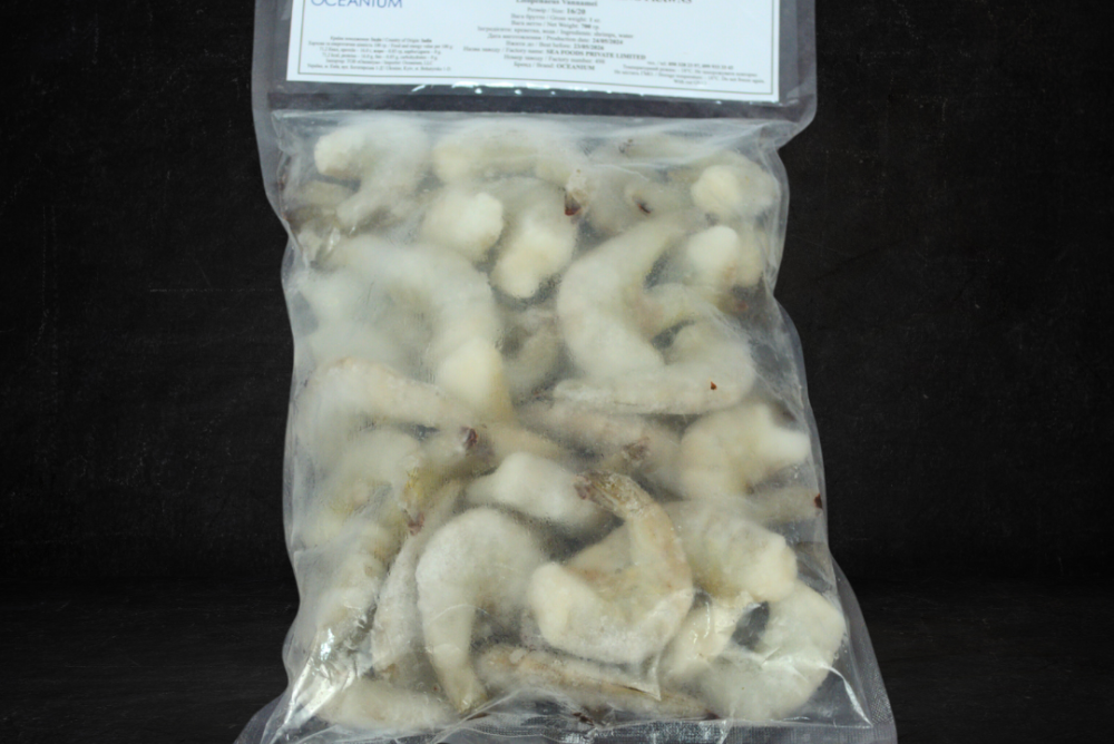 Креветка без голови сира, заморожена, калібровка 16/20. Фасовка по упаковкам - 1кг.